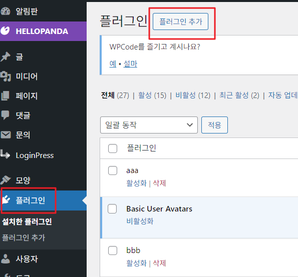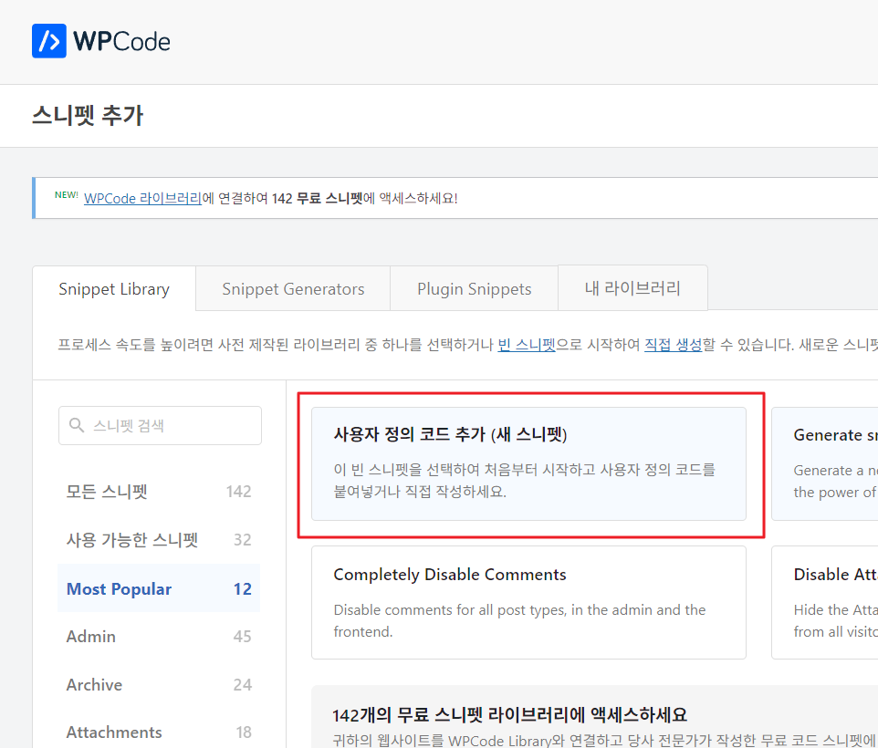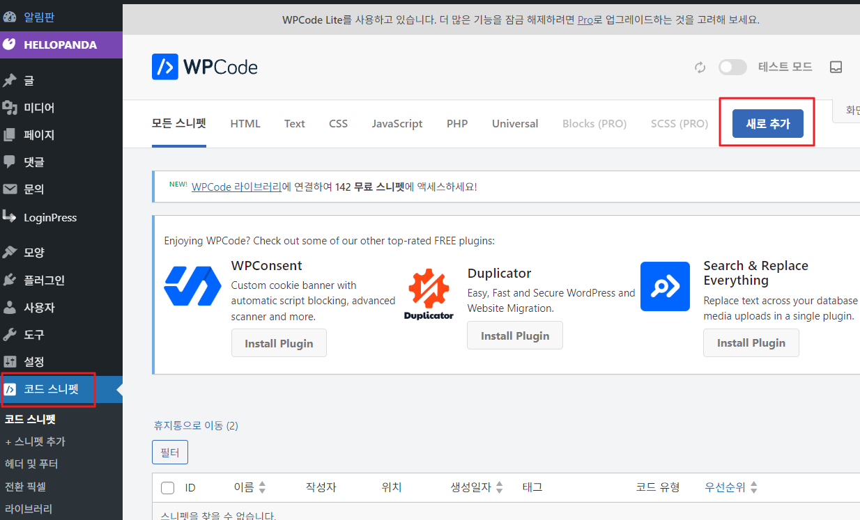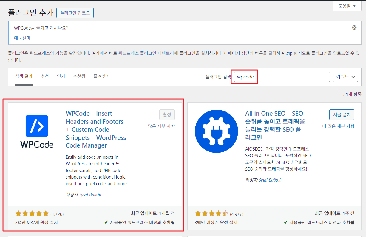 A. WPCode 플러그인을 설치 및 활성해주세요.